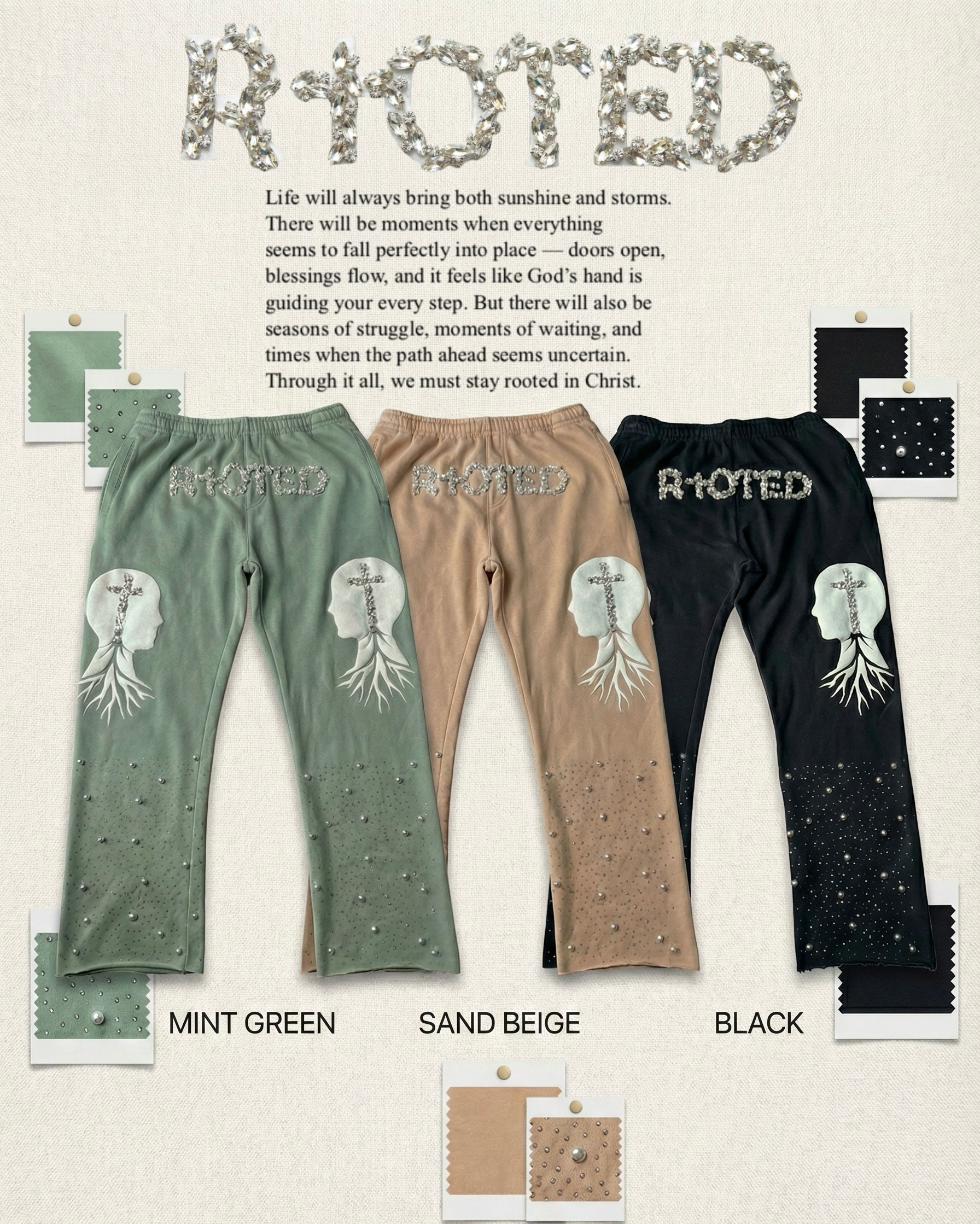 Sage Green "RIOTED" Crystal & Graphic Heavyweight Sweatpants